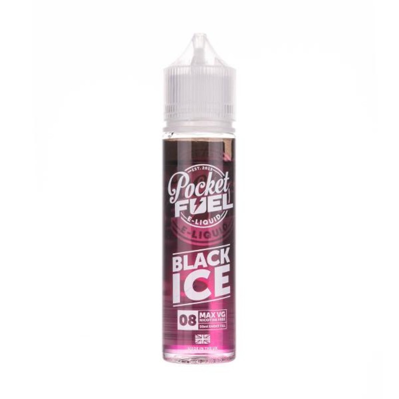 Pocket Fuel Black Ice 50ml shortfill e-liquid combines juicy blackcurrants and menthol with a touch of aniseed. The juicy and tangy notes of blackcurrant are amplified by a fresh hit of ice and aniseed.Pocket Fuel shortfills are mixed to a high VG, 80/20 ratio, for use in sub-ohm devices. Supplied in a 60ml bottle short-filled with 50ml zero nicotine flavoured e-liquid, just add one nicotine shot ..