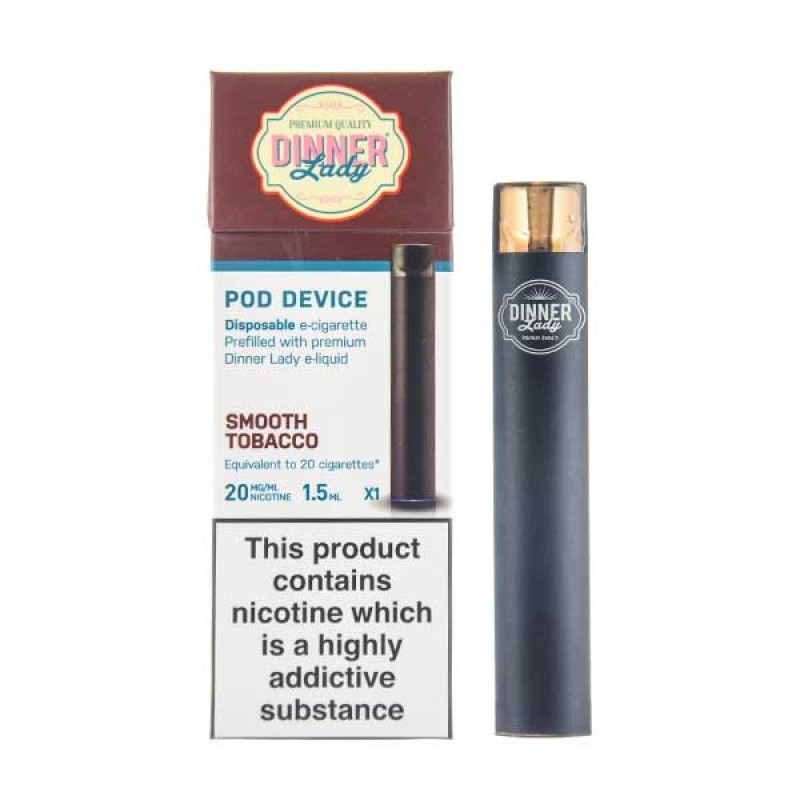 Designed to be super easy to use with a satisfying nic hit in all the classic Dinner Lady flavours is the disposable pod kit. With a 300mAh battery and 1.5ml of e-liquid in a 20mg nic salt strength, the Dinner Lady disposable pod kit is an ideal step for transitioning smokers. They take the hassle out of changing coils and refilling pods, just inhale on the mouthpiece to vape.