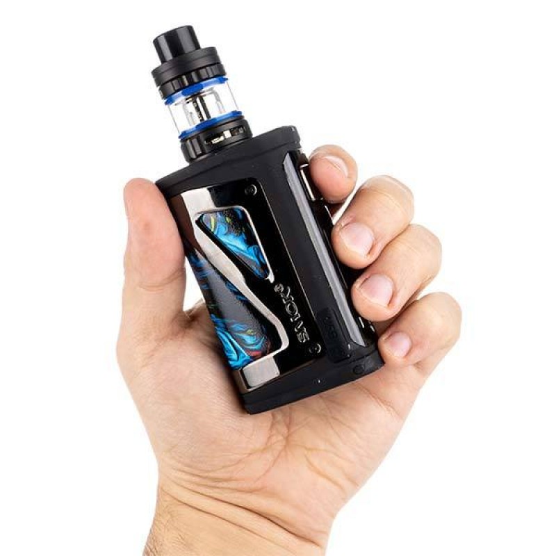 The SMOK Scar 18 Vape Kit is a stylish and rugged advanced vape device, comprising of the dual 18650 battery powered SMOK Scar 18 mod capable of firing at up to 230 watts, and the suitably paired TFV9 sub-ohm tank. The SMOK Scar 18 is constructed from zinc alloy and has an IP-67 rated shell, which offers dust, water and shock protections. Requiring two high-amp 18650 vape batteries (sold separatel..