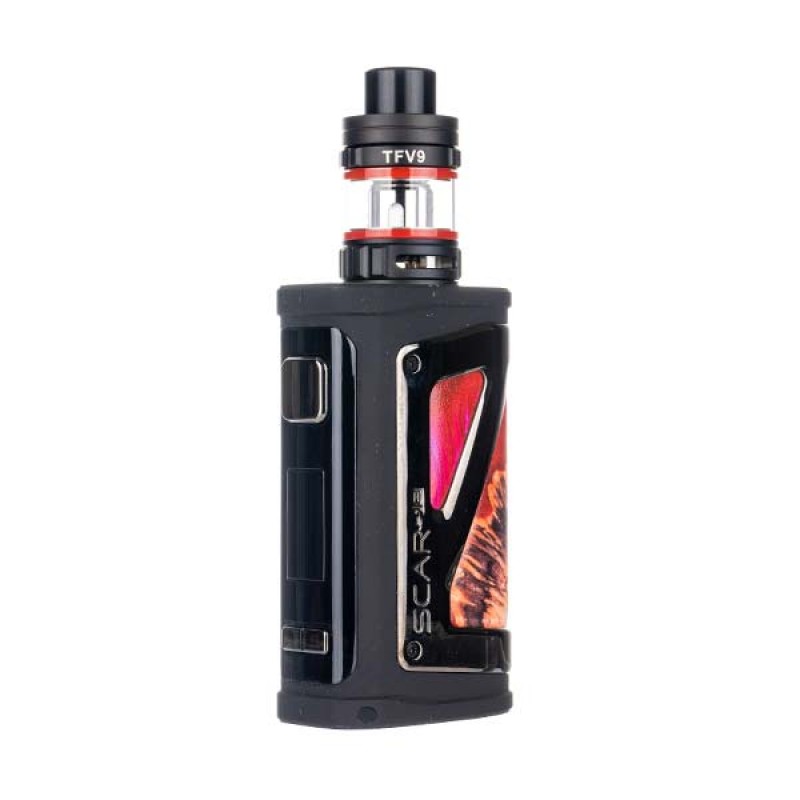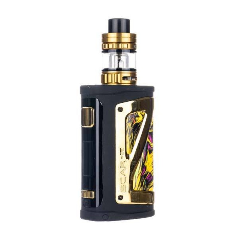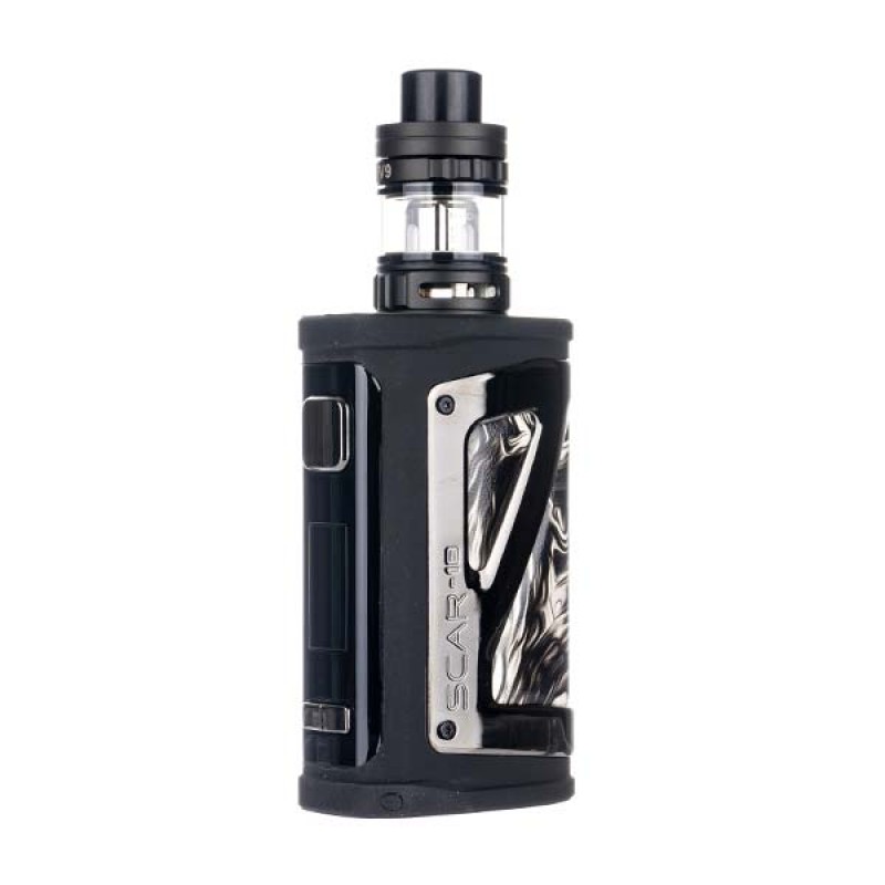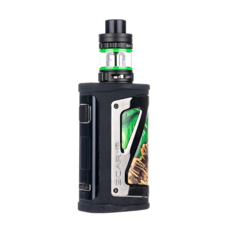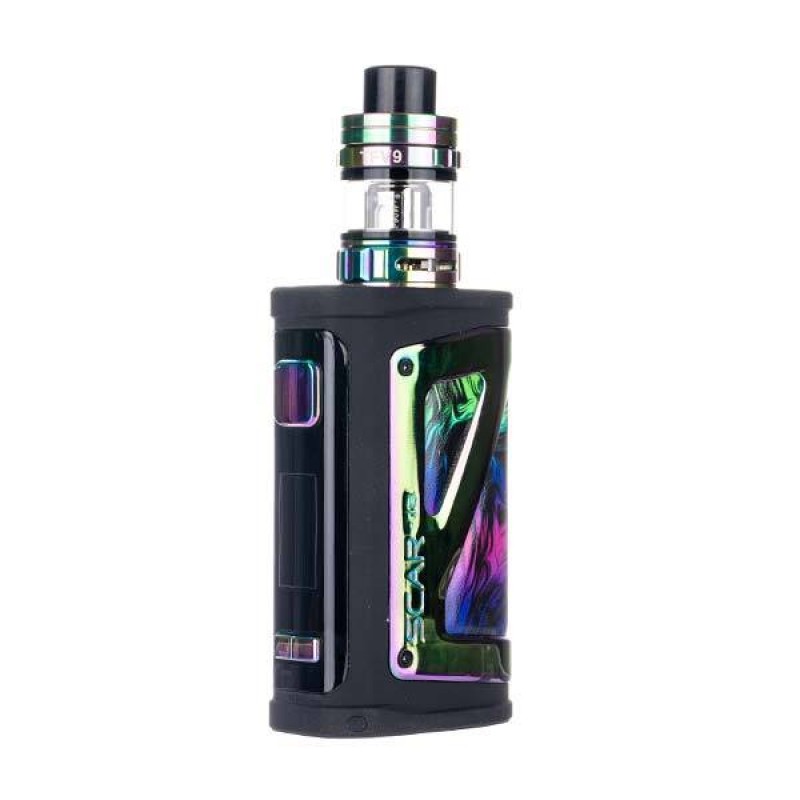 The SMOK Scar 18 Vape Kit is a stylish and rugged advanced vape device, comprising of the dual 18650 battery powered SMOK Scar 18 mod capable of firing at up to 230 watts, and the suitably paired TFV9 sub-ohm tank. The SMOK Scar 18 is constructed from zinc alloy and has an IP-67 rated shell, which offers dust, water and shock protections.