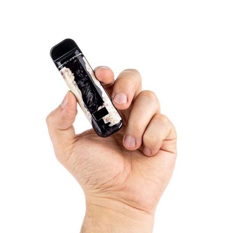 The SMOK Novo X has a zinc-alloy chassis and is compact in size, measuring 92mm high x 26.5mm width. Inside the lightweight chassis, is an internal 800mAh battery which is charged via a micro-USB port at the base of the device. Now offering variable wattage, the SMOK Novo X has a range of between 1 - 25W which is controlled via the low profile adjustment buttons (power button). Sitting above the adjustments is a 0.49-inch OLED screen, which displays all vital information from wattage settings, resistance and puff-count. It’s compact and minimalist but still carries the usual safety features including short circuit, low voltage, automatic pod recognition and 8 second cut off protection features.
