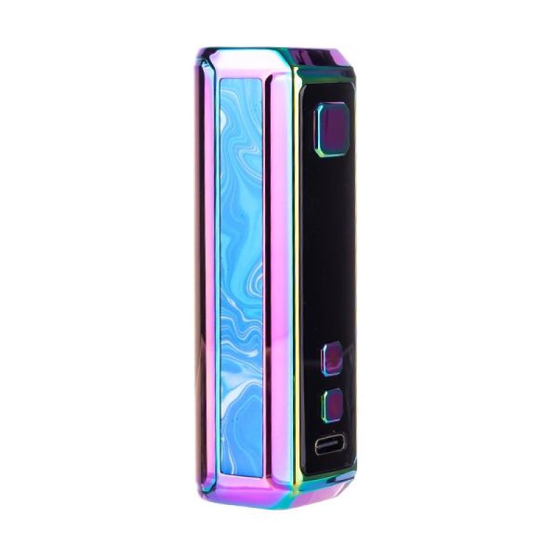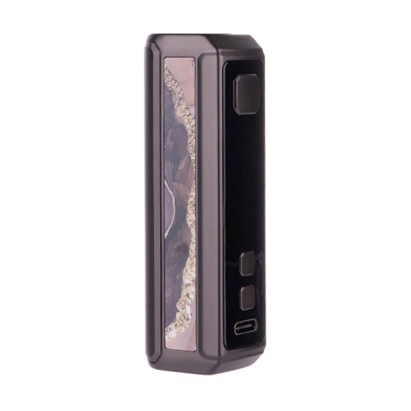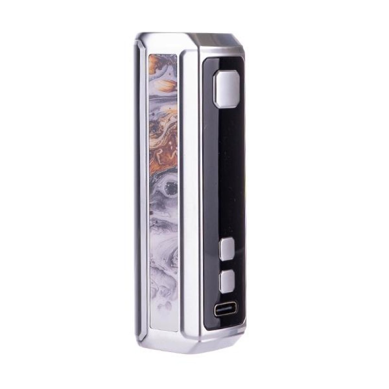 The Geek Vape Z50 mod is constructed from durable zinc-alloy and finished off with metallic and Ancient Greek inspired marbling effect panels. A large 0.96" OLED display screen is located on the side face of the mod, clearly presenting vital settings, resistance and remaining battery level. Settings are controlled via two adjustment buttons beneath, and to fire the device a large firing button is situated above the screen.
