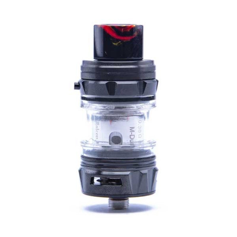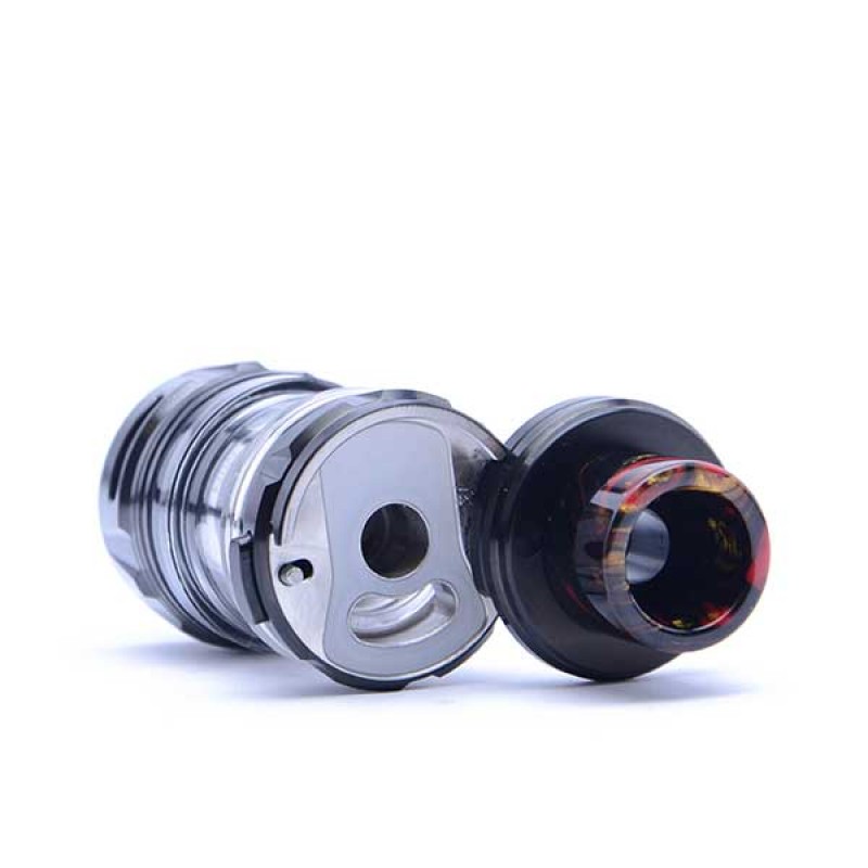 Measuring in at 25.4mm in diameter, it was made to be paired with larger mods for super Sub Ohm vaping. It has a standard 2ml tank capacity with a rotating top cap to make refilling with e-liquid a breeze. The resin wide bore drip tip looks stunning as well as enhancing vapour production. Adjustable airflow at the base of the tank allows you complete control over how airy you like your vape to be.